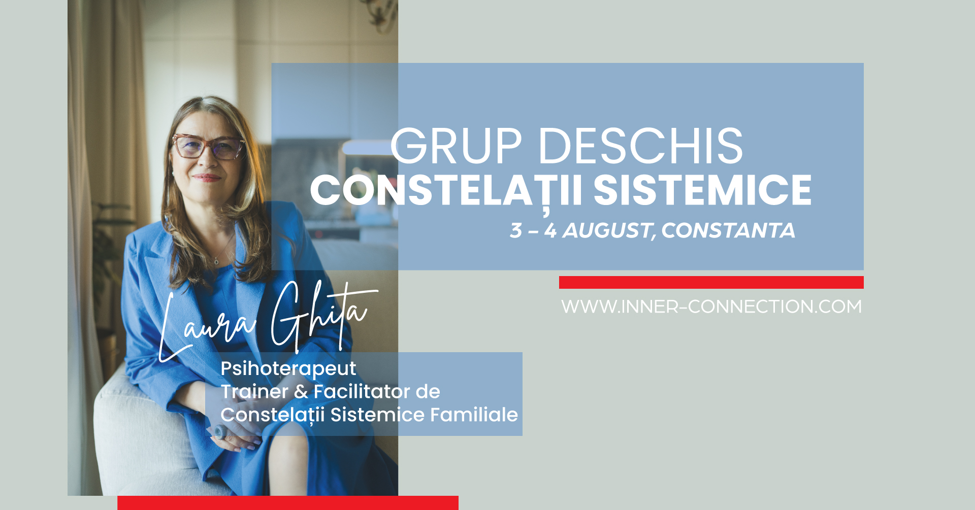 Constanta, 3-4 AUGUST 2024 - WORKSHOP Constelatii Familiale cu Laura Ghita Modalitatea Constelațiilor Familiale te poate ajuta să faci această muncă interioară importantă și mișcarea potrivita pentru a depăși problemele actuale și pentru a-ți transforma viața! Un atelier de Constelatii Familiale poate fi descris ca o experienta profundă, meditativă deoarece, în conexiune cu o altă […]