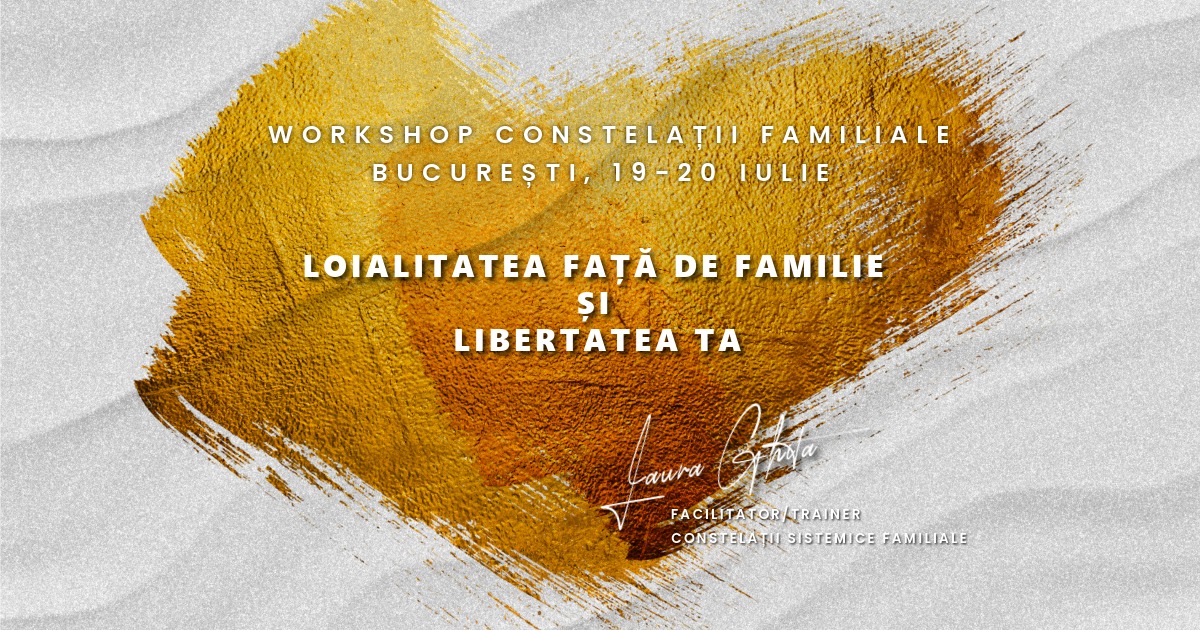 București, 16-17 Noiembrie 2024 - WORKSHOP Constelatii Familiale cu Laura Ghita Modalitatea Constelațiilor Familiale te poate ajuta să faci această muncă interioară importantă și mișcarea potrivita pentru a depăși problemele actuale și pentru a-ți transforma viața! Un atelier de Constelatii Familiale poate fi descris ca o experienta profundă, meditativă deoarece, în conexiune cu o altă […]